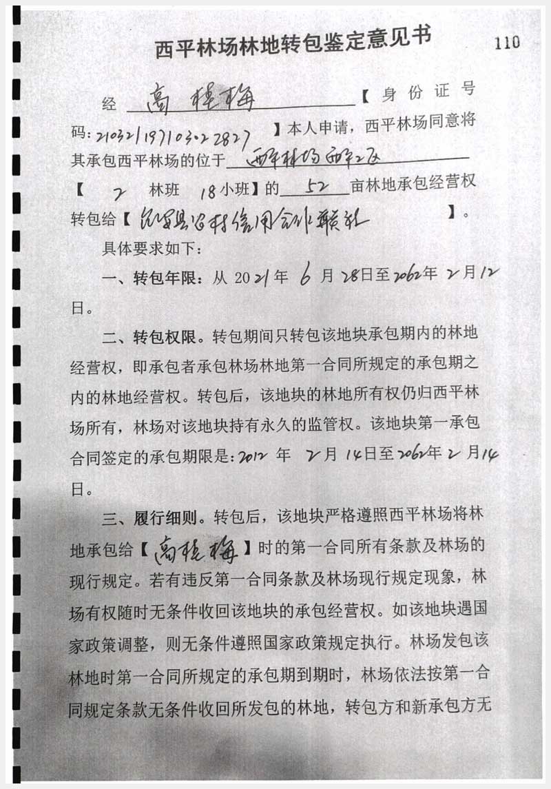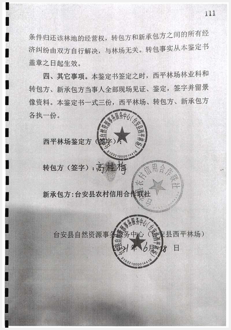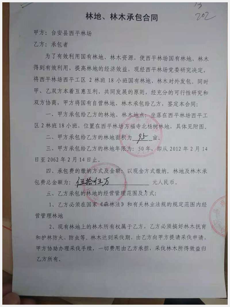 100號 臺安縣西平林場萬福寺北林地經(jīng)營權