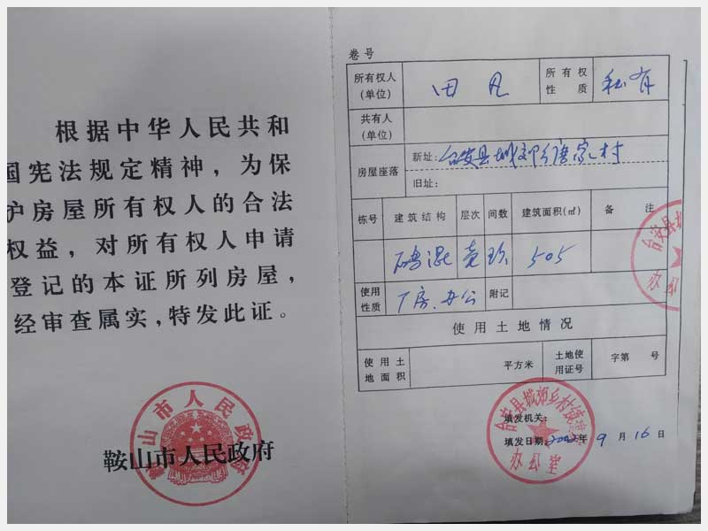 105號(hào) 臺(tái)安縣城郊鄉(xiāng)唐家村房產(chǎn)及土地使用權(quán)