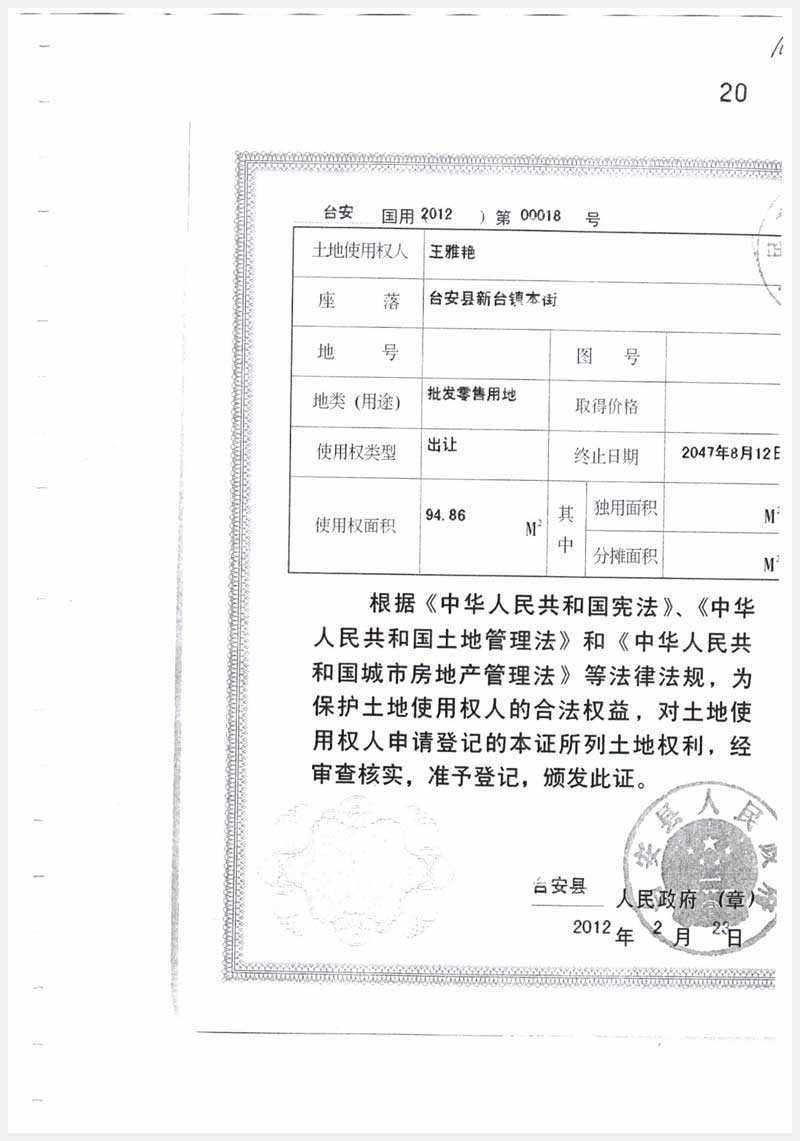 名稱:臺安縣新臺鎮(zhèn)本街2處房產(chǎn) 面積:185.88㎡、186.96㎡ 瀏覽次數(shù):1269